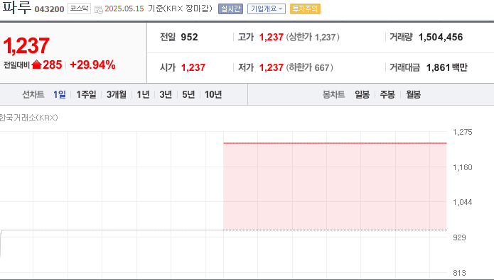 파루는 포스팅하는 날 기준으로 상한가를 갔네요 ~!